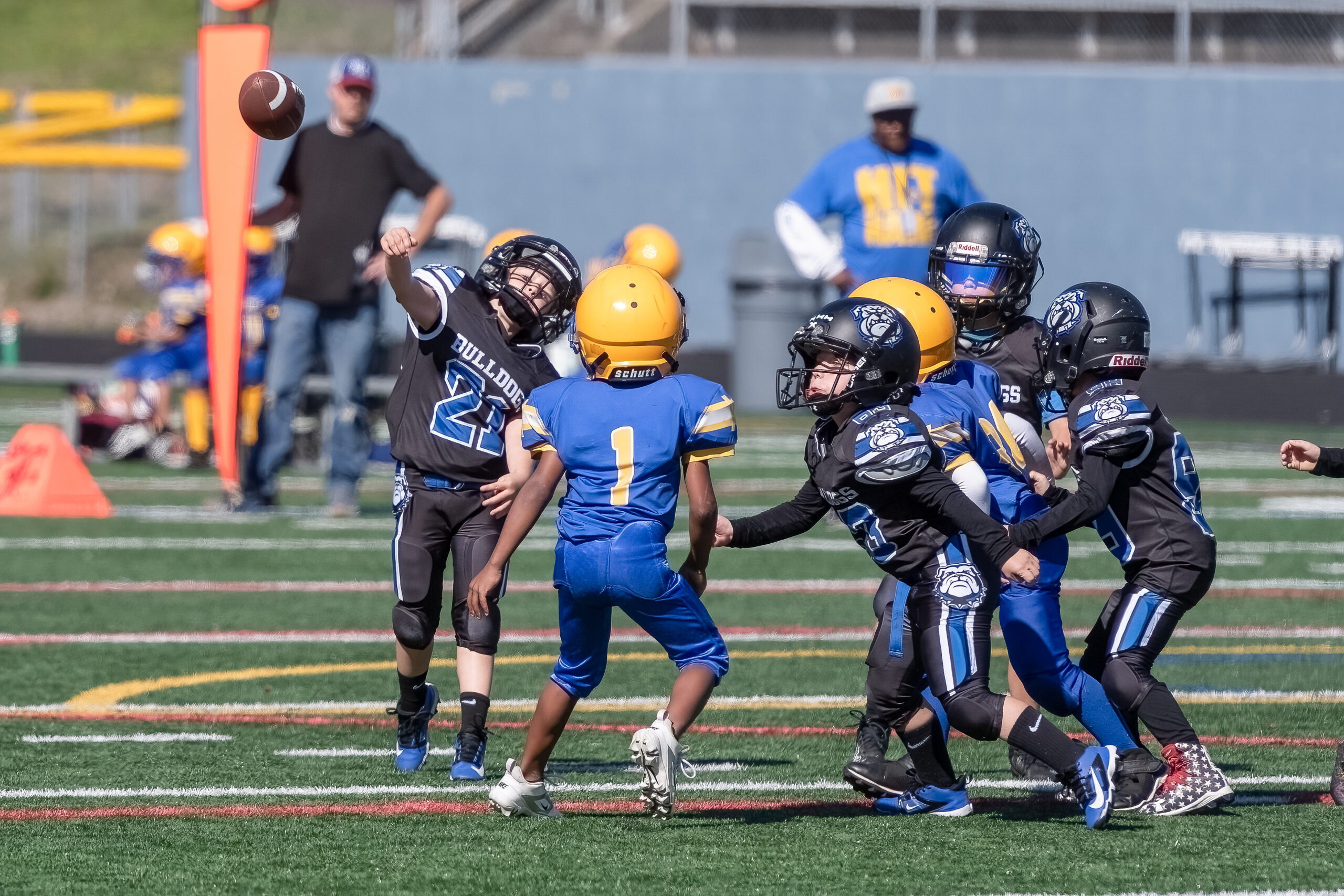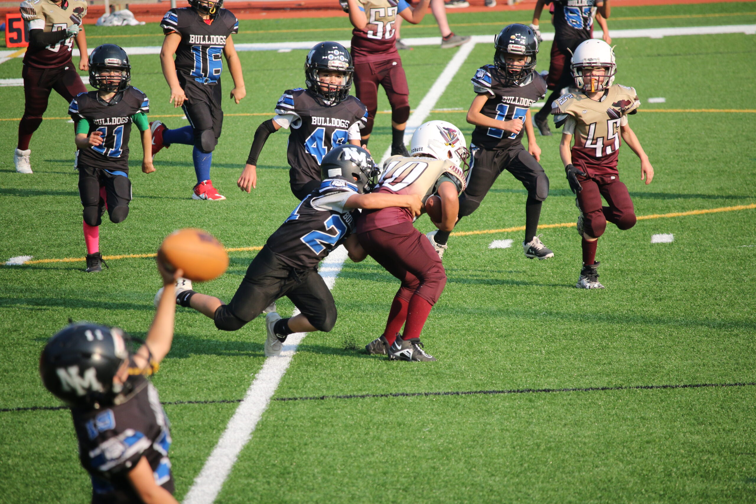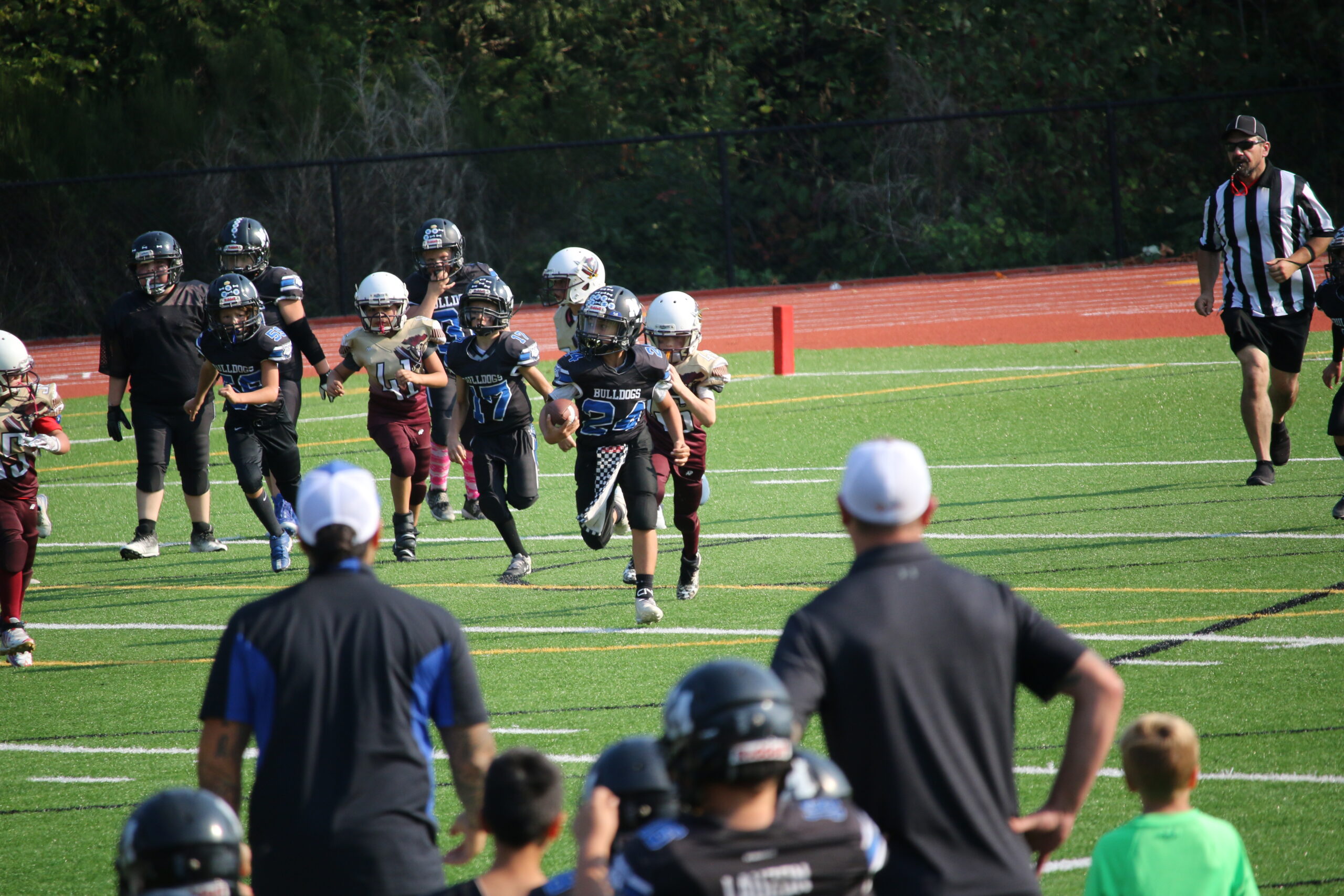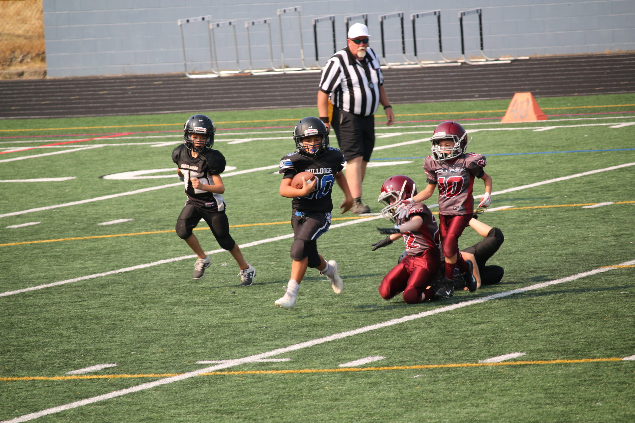 Our Pee Wee Football Program is designed to introduce young athletes to the fundamentals of football in a fun, supportive, and team-oriented environment. Open to players of all skill levels, this program emphasizes the basics of the game—including proper techniques, rules, teamwork, and sportsmanship—while helping kids build confidence on and off the field. Our goal is to create a positive and engaging experience where players not only improve their football skills but also develop a lifelong love for the game. Through age-appropriate drills, games, and scrimmages, we ensure that every child has the opportunity to learn, grow, and have fun. Whether your child is stepping onto the field for the first time or continuing to build their skills, our Pee Wee Football Program lays the foundation for future success and a passion for the sport.